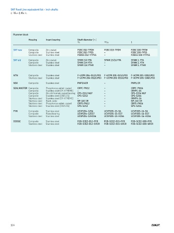 SKF Food Line equivalent list – inch shafts