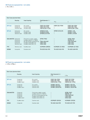 SKF Food Line equivalent list – inch shafts