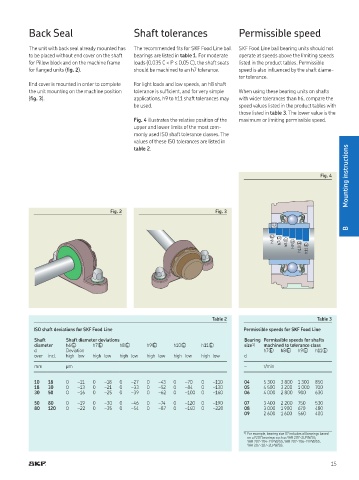 ISO shaft deviations for SKF Food Line Permissible speeds for SKF Food Line