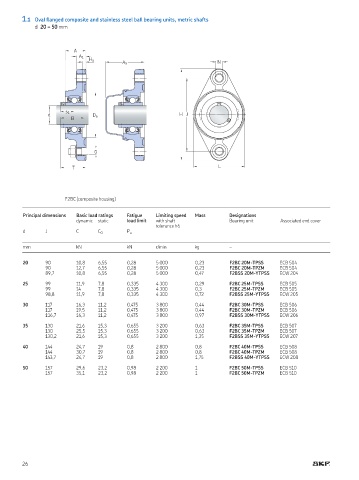 1.1 Oval flanged composite and stainless steel ball bearing units, metric shafts