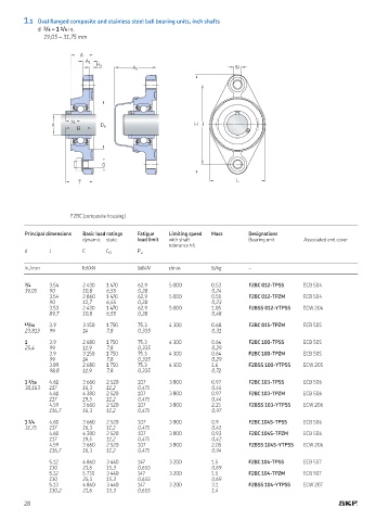 1.1 Oval flanged composite and stainless steel ball bearing units, inch shafts