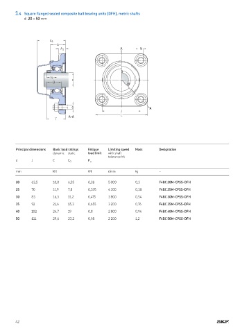 1.4 Square flanged sealed composite ball bearing units (DFH), metric shafts