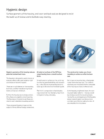 Hygienic geometry of the housing reduces All external surfaces of the SKF blue The construction makes use of over