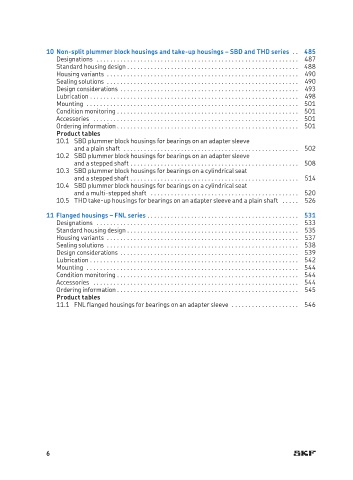 10 Non-split plummer block housings and take-up housings – SBD and THD series . 485