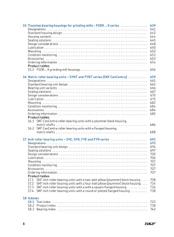 16 Metric roller bearing units – SYNT and FYNT series (SKF ConCentra) . . . . . . . . . . . 659