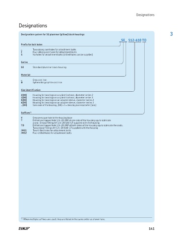 Designation system for SE plummer (pillow) block housings 3