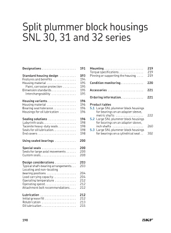 Sealing solutions . . . . . . . . . . . . . . . . . 196 5.2 Large SNL plummer block housings