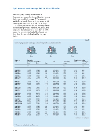 Load carrying capacity and torque values for cap bolts and attachment bolts