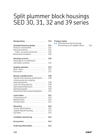 Standard housing design . . . . . . . . . . 334 for bearings on an adapter sleeve . 344