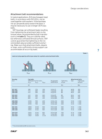Load carrying capacity and torque values for cap bolts and attachment bolts