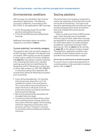 an SKF housing is indicated in the relevant prod- suitability of each sealing solution are also