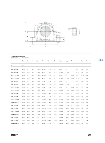 SAF 22220 4 3 /8 6 1 /32 3 /16 1 59 /64 8 9 /16 4.500 1 3 /4 11 5 /8 13 1 /8 – 15 1 /4 1 7 /8