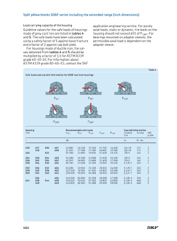 and 5. The safe loads have been calculated bearings mounted on adapter sleeves, the