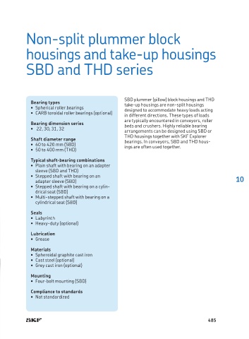Shaft diameter range bearings. In conveyors, SBD and THD hous-