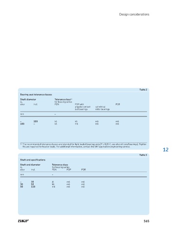 1) The recommended tolerance classes are intended for light loaded bearings only (P < 0,05 C, see also skf.com/bearings). Tighter