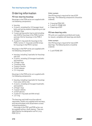 PDN 2 series; V-ring seals and felt strips One PD housing is required for two 6309