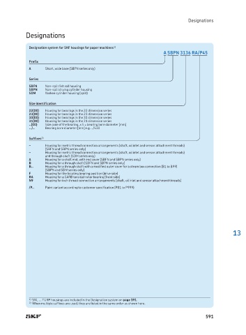 Designation system for SKF housings for paper machines 1)