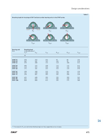 Breaking loads for housings of SKF ConCentra roller bearing units in the SYNT series