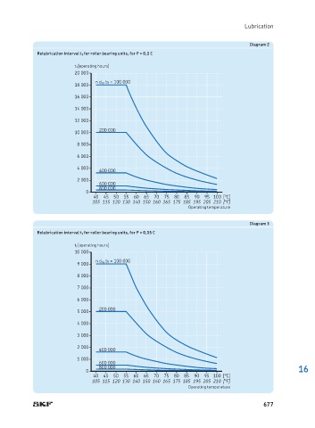 Relubrication interval t f for roller bearing units, for P = 0,1 C