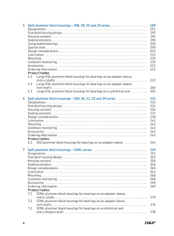5 Split plummer block housings – SNL 30, 31 and 32 series . . . . . . . . . . . . . . . . . . . . . 189