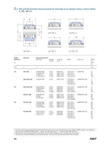 2.1 SNL and SE plummer block housings for bearings on an adapter sleeve, metric shafts