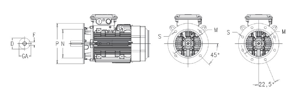 Dimension : Motor size = 90M , D = 24 , E = 50 mm , L = 351 mm , A = 140 mm , B = 125 mm , N = 130 mm , P = 200 mm