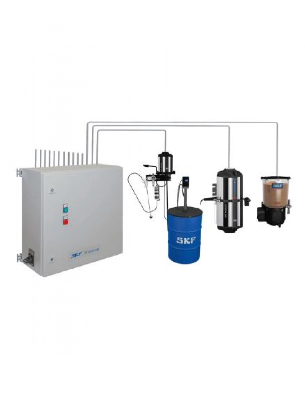 Versatile and durable, automatic pump change (Dualset), Modular units provide easy system modification, Compatible with ultrasonic low level sensor, Grease spraying control with air monitoring, Compatible with SKF doser monitor