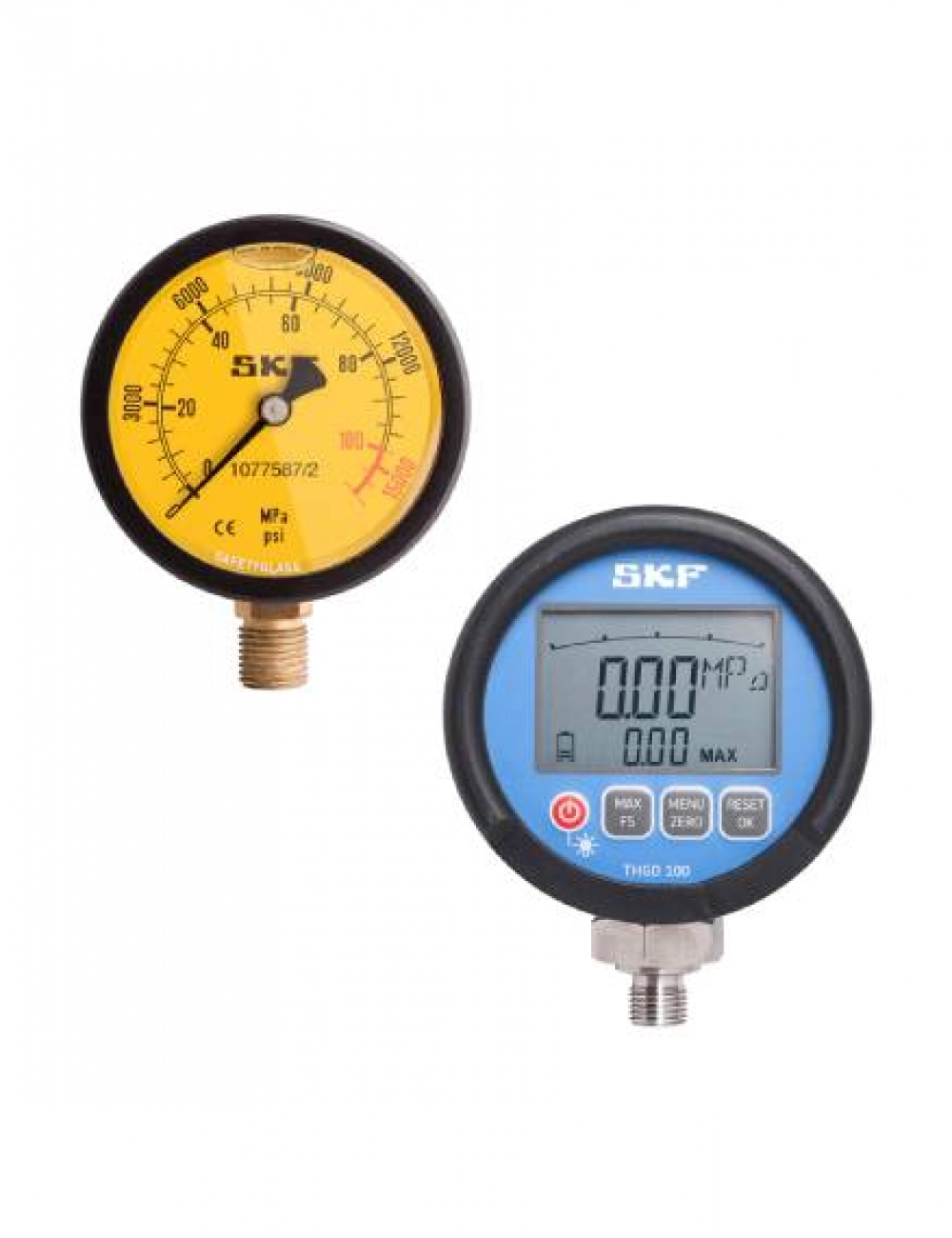หน้าปัดวัดความดัน ครอบคลุมแรงดัน 100 ถึง 400 MPa (14 500 ถึง 58 000 psi)